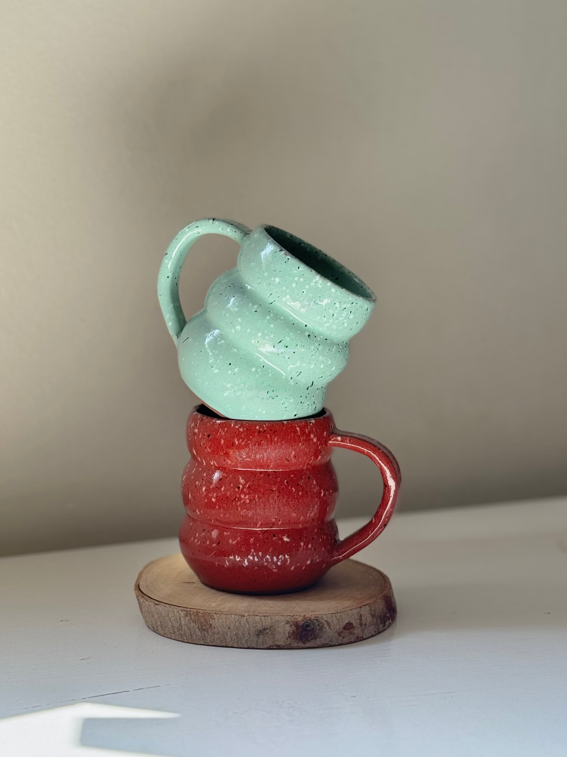 A perfect pair of handmade mugs — The Ember in bold red and The Sage in calming green. Together, they balance warmth and tranquility, making every sip a moment of art. Unique, handcrafted, and designed to stand out in your daily ritual.